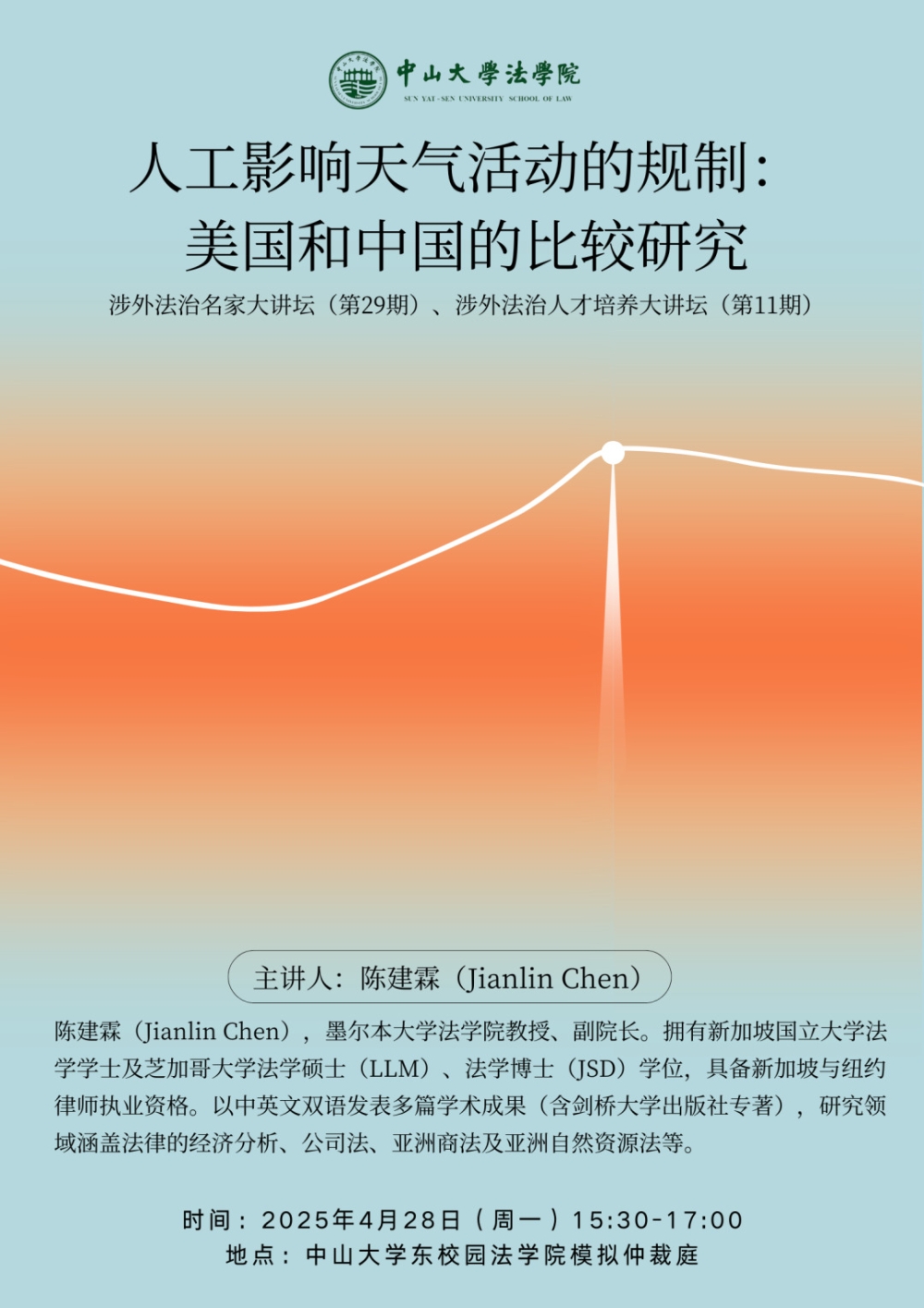 涉外法治名家大讲坛(第29期)、涉外法治人才培养大讲坛(第11期)——人工影响天气活动的规制:美国和中国的比较研究